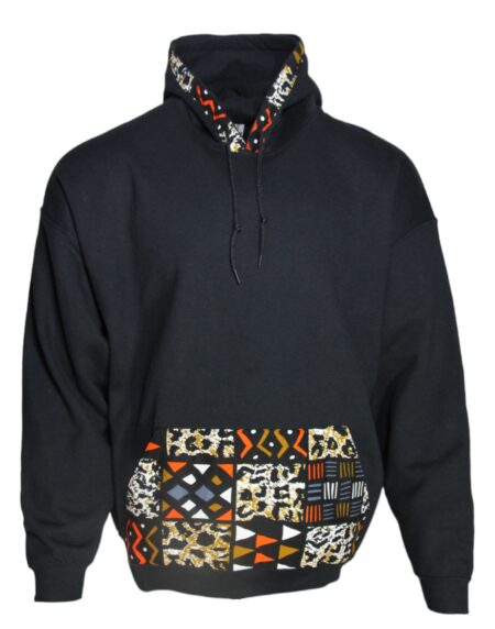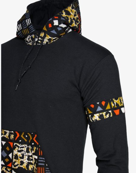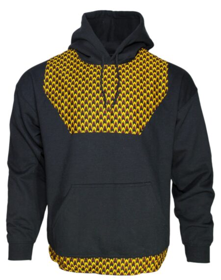 Vibrant black hoodie proudly showcasing the popular yellow Ankara fabric