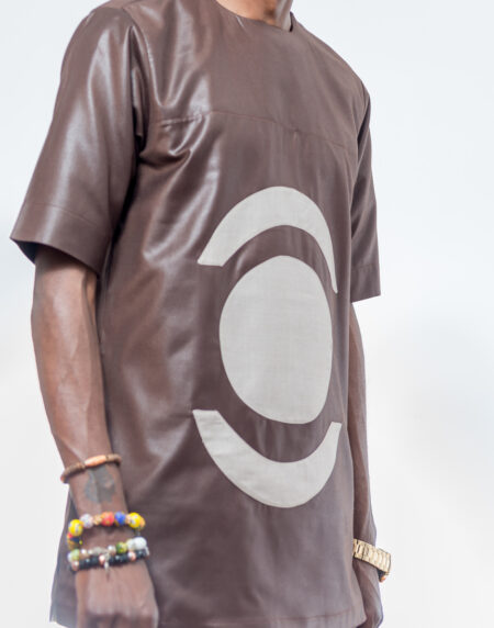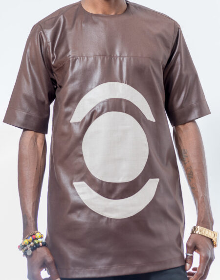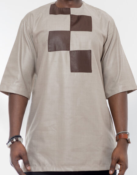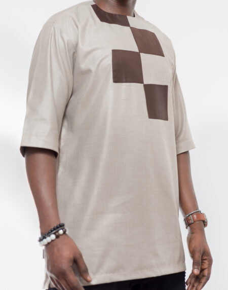 Brown and Tan Short-Sleeve Shirt